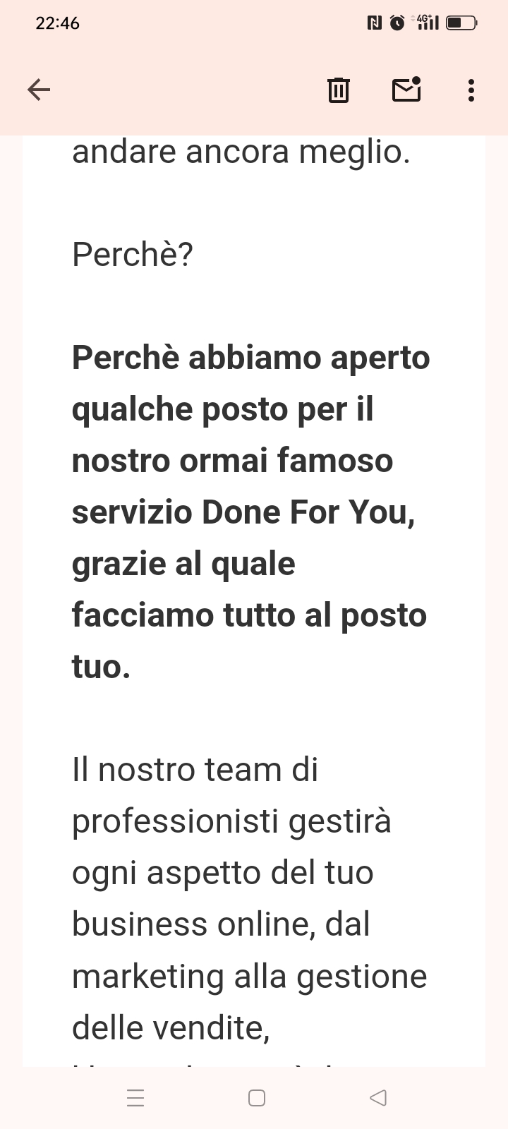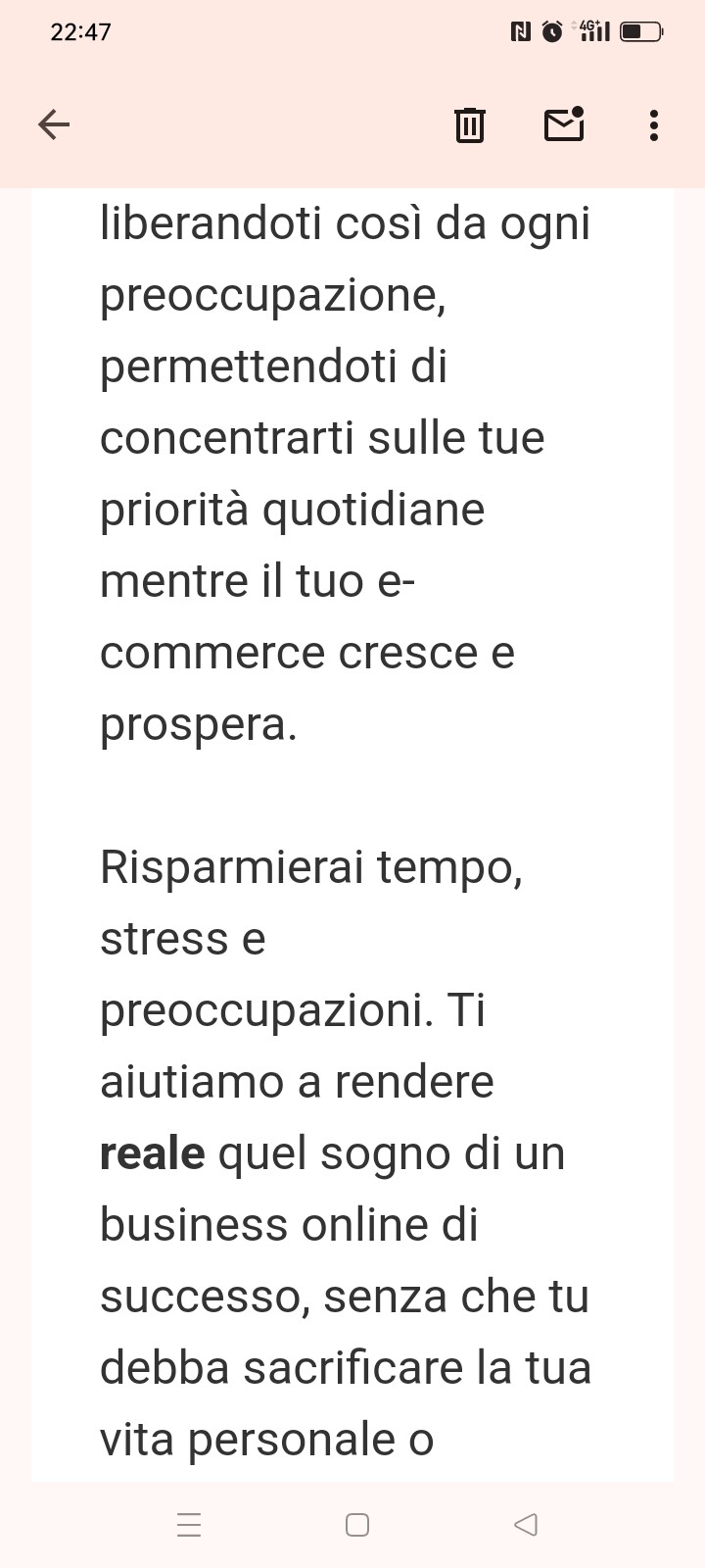 Dunque, intanto confermo che in effetti c’è una mail che parla di ecommerce “chiavi in mano” ed effettivamente proprio di done for you veri e propri.
