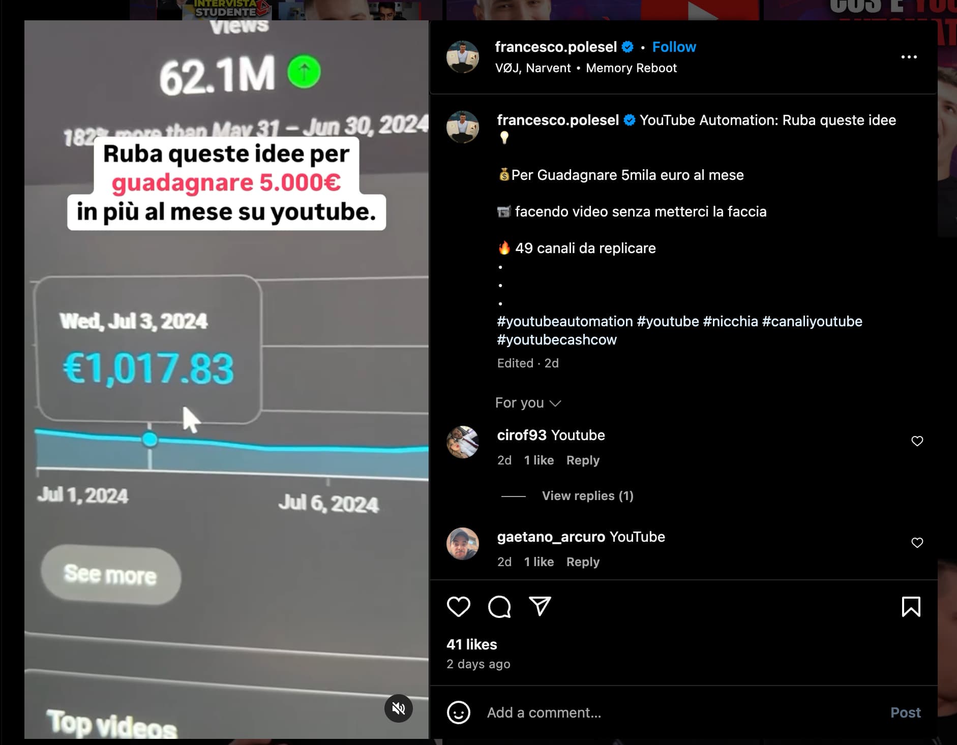 il mio primo post qui.. e vi ringrazio, cercavo proprio su google notizie su questo corso e ho trovato voi ero scettico già dal fatto che non ci sono i prezzi, ma devo fissare una call, per il resto sembrava interessante avere alcune info su come sfruttare youtube, anche se per un mio progetto e non per riempire il canale di cacca.. a tal proposito, sicuramente sarete più esperti di me XD avete qualcosa da consigliarmi per sfruttare bene youtube?